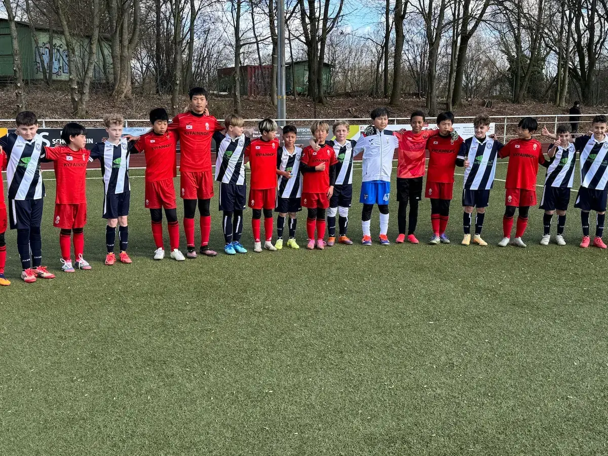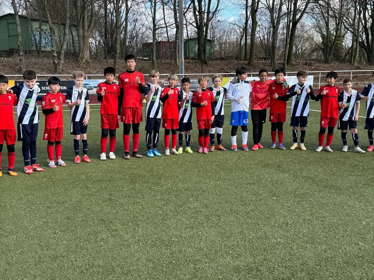 Ein besonderes internationales Highlight auf der Bezirkssportanlage Jüchen: Mit KYFAinno Seoul war eine südkoreanische Auswahlmannschaft des Jahrgangs 2015 zu Gast. Am Ende setzte sich unsere D2 mit 3:0 durch – bei bestem Fußballwetter und toller Atmosphäre.